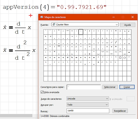 LaTeX is at least an option, it makes compound symbols out of basic characters and decoration symbols. Having an x-umlaut character is just a poor replacement for \ddot x. So I rather accept that SMath can't handle well decorations instead of font-mining for look-alikes.