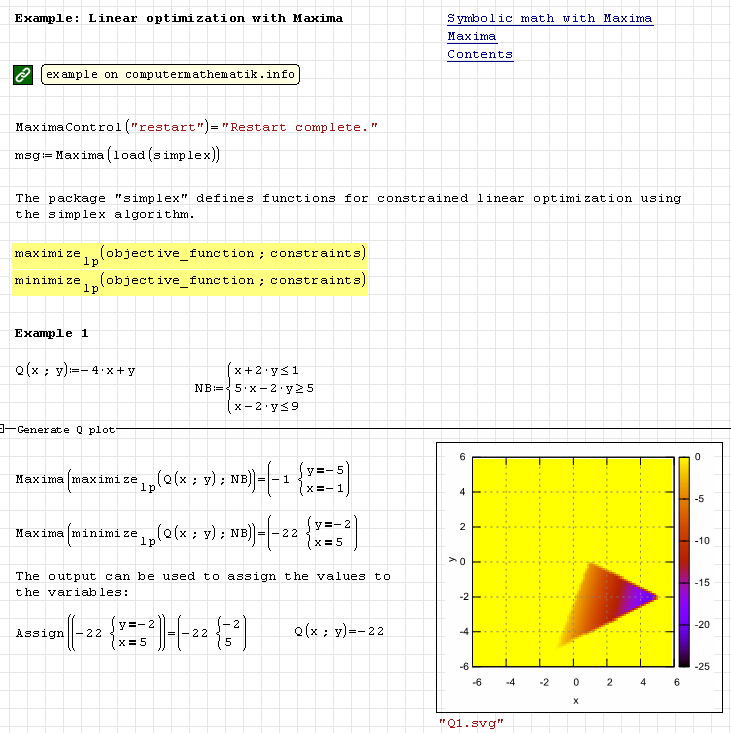 Maxima - Examples for using the Maxima Plugin - Сообщения