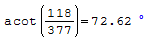 Hi. That value is correct. That function is arc cotangent. You are not thinking about atan (arc tangent) ?