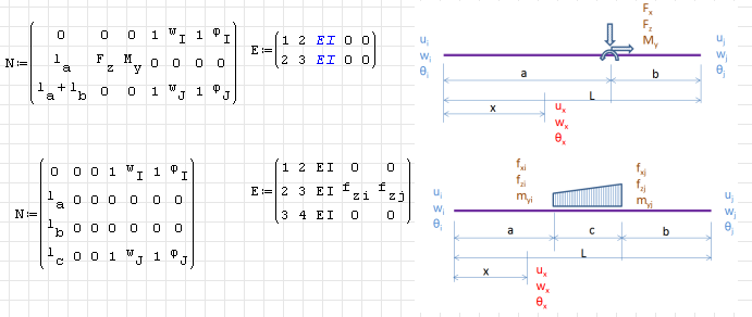 I think both of these are very impressive and a good learning too. I am realizing now though what I need is probably just a simple beam program. If I could figure out how to incorporate a cantilever that would be good too. I realize though now that in practice when designing I most need a simple beam program. It is really all about speed and ease of use. It is cumbersome to have to input nodes at each point load, etc. I now realize if I get to a situation where I have continuous beams it is usually easier to use an FEM package that we already have. So now I have egg on my face as I was the one who suggested the FEM approach in the first place. Anyway, we are pretty busy at work but I'm going to try and see if I can finish up this function. I think this is ultimately the most difficult part. Most other engineering calculations are simply just following material codes and engineering principles.