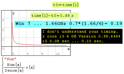 0.08 for Denom (x)*c(x) and 0.12 sec for Num(x)*c(x).