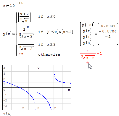 As you can see in the picture, y(3) is being counted by the second formula, but it must be counted by the third formula cos' x>2 and it must be equal 1. What's wrong with that? Thanks!