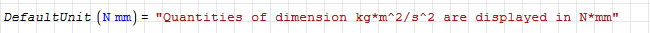 DefaultUnit(N*mm) would display all values of matching dimension (whatever simplifies to kg*m^2/s^2) in units of N*mm (until the next such command is issued).