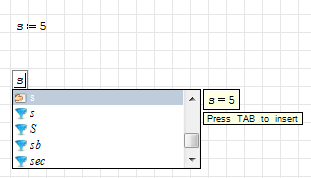 If you define a variable with the same name of a unit, the variable s shown as first in the dynamic assistance, otherwise you have to type at least another character (if there is a 1-character unit or function already defined)