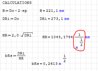 You cannot expect the square root of a length (given in mm) to be of dimension length. That would mean you would expect length times length to be of dimension length instead of area. Thus your equation might be designed for dimension- or unit-free values, how they are sometimes still in use. They require you to put in the data in certain units and deliver the result also in certain units. If you use such equations with variables containing value and unit, you first must divide the input by the required input unit and take the result times the expected results units. I'd try to avoid this, because this procedure is far from self documenting. Try to use equations involving just real physical quantities regardless of their units. SMath is ideally suited to handle such equations.