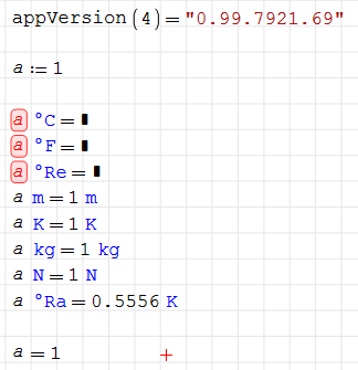 I found some strange behaviour. Let's assume two dimensionless quantity length:=10 and temp:=12. Now I multiply length * 1m and the result is 10m. However if I multiply temp * 1degC the result is error because temp is not defined? Is it some kind of a bug?