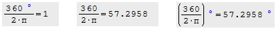 As you illustrated entering 360 degrees / (2*pi) yields 1.