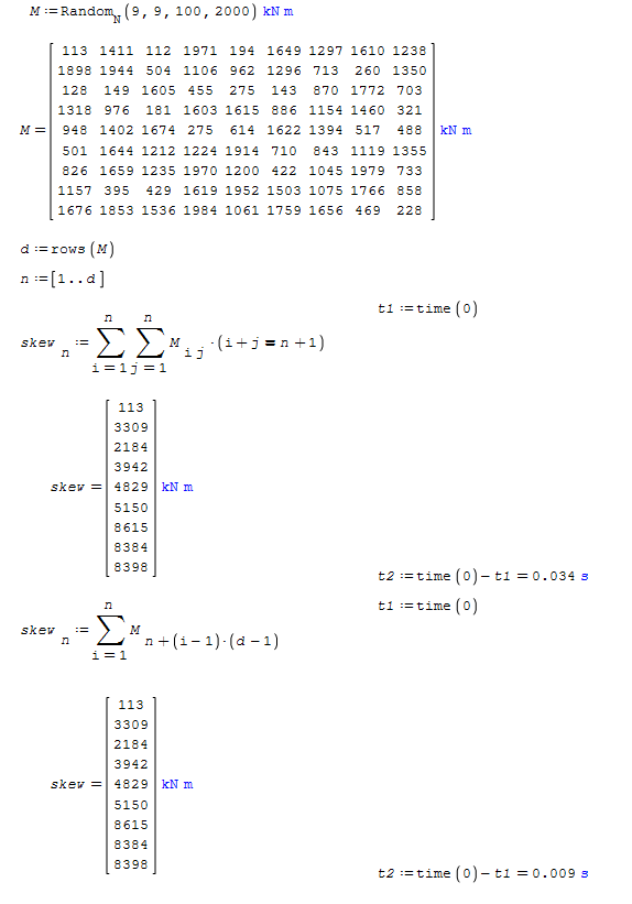 BTW with a random set of values and small matrices, doesn't seems so slow in my machine (WIN7PRO/AMD PRO A10/16GB RAM). With bigger matrices the difference is huge (for a 100x100 matrix, 26.1s with first method, 0.028s with second method)
