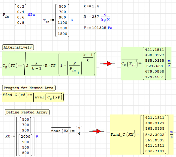 I'm having a little difficulty using matrices. How can I tell SMath to take the first row value from matrix "Pin" (0,2) and calculate formula "C0,2" with each value from matrix "Tin". I then want the result displayed as a new matrix 1x6, if possible (see pictures below). Thanks!