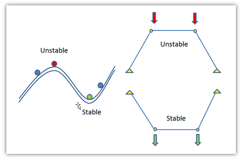 You have a classical illustration of the stable vs unstable equilibrium.