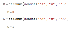 I am trying to create a boolean string using for loop and str2num() on a matrix with three rows - left side, operand, and right side, and n columns.