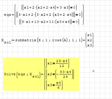 And I probably can setup my solution in a way that does not require solving 3 equations with four unknowns, but heck, for educational purposes, can SMath do it (and how)? Maxima can.