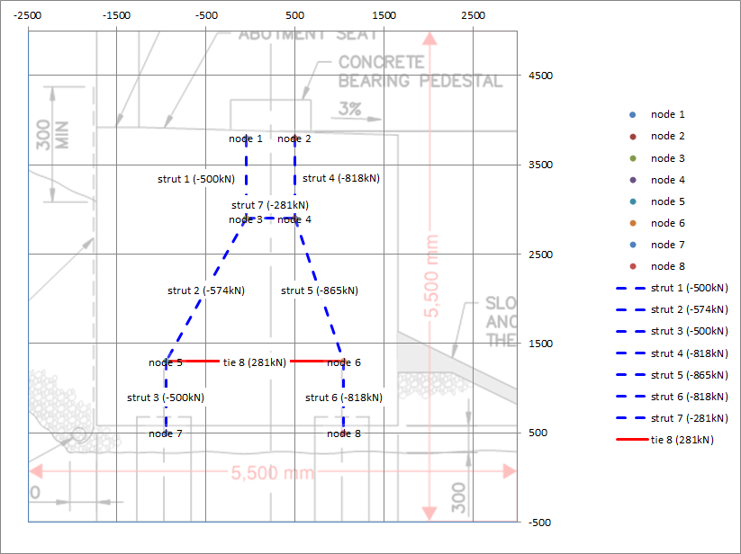 And this little guy took me about 20 minutes to setup.. Mostly defining coordinates and stuff. If the drawing was to scale I could have just located the nodes of my strut & tie graphically.