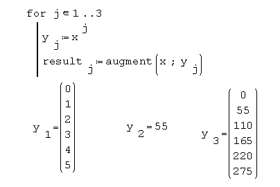 у меня то просто for не срабатывает ... или augment... - пытаюсь на простом потренироваться, а матрицы, как в первом вашем ответе, у меня не получается:
