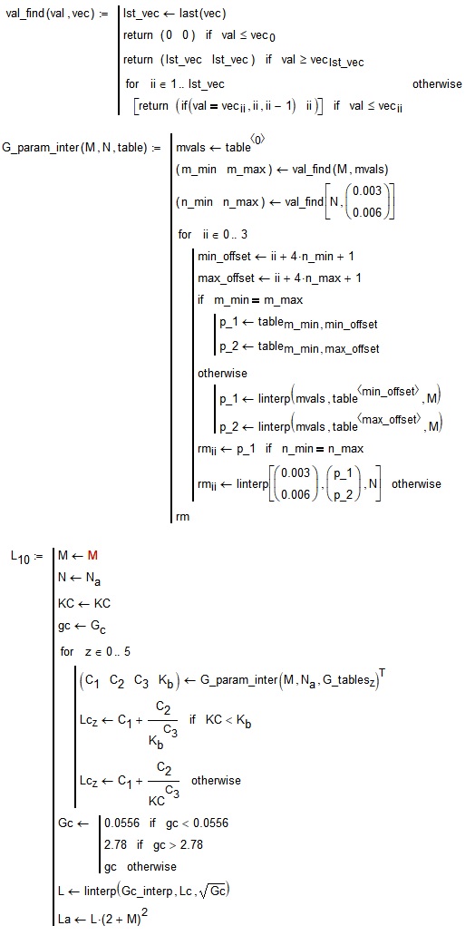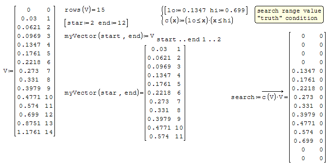 This code could replicate the mathcad function, but because isn't clear where ends the for loop, I'm not sure if it is correct. You need to do some debug here. Notice also that mathcad can have for loops without "ending" or "close" with a result the line, but smath can't.