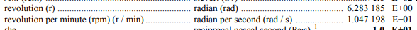 By the way, the NIST document above gives the conversion factor between the frequency in the unit rpm and the angular velocity in the unit rad/s.