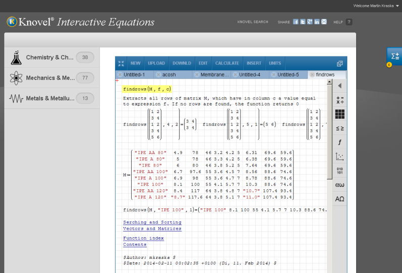 SMath Studio core is built-in into Knovel Interactive Equations to provide ability to make calculations of all kinds in the browser window with no need to instal any third-party products.
