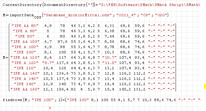 I have a large spreadsheet of data. In this instance the data consists of section properties for AISC steel shapes. I am wondering what is the 'best' way to incorporate this large 'database' into Smath calculations. For example, I would ideally like to select a shape (I suppose I could type the name) i.e. W21x57 and then have a bunch of section variable populate with the data.