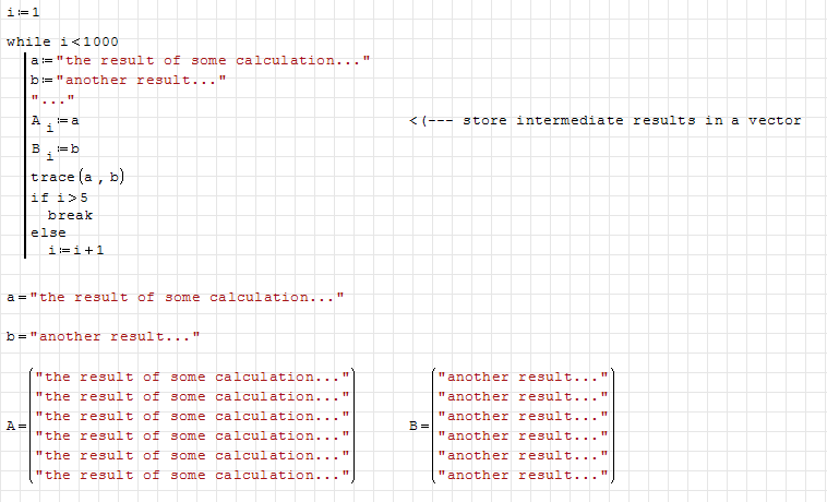 I have been exploring Smath for about a year and it now seems to have reached the stage (currently I am using RC 0.97.5301) where it can give good results. However, I cannot find any way of getting it to do what I need in respect of the recovery of multiple values from the while loops. I have been playing around with the use of column vectors to act as "containers" for returning the requisite values, but without success as yet. Am I on the right track ?