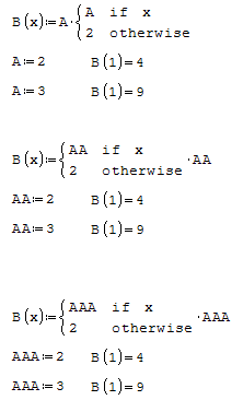 ЦитатаThe difference comes when the value of A changes after the definition of f(x) and g(x).