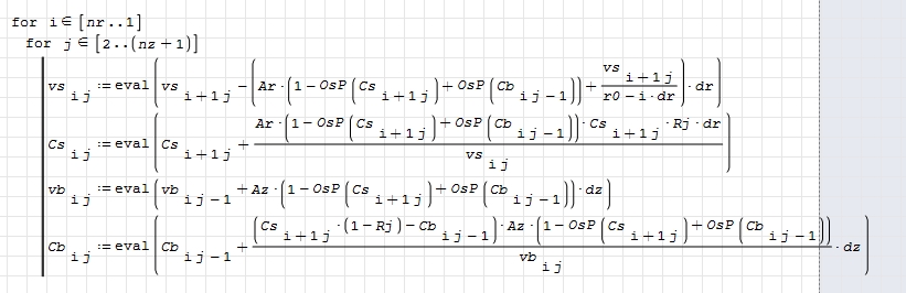 When I interrupt the calculation, it stopped at 2nd for loop, i=50 and j=9. Some of the variables has expression, for example, vs(i,j), some of the value was the initial value of -1, but calculated values has units that wasn't canceled. vs is supposed to be dimensionless.