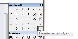 I tried your suggestion "evaluate numerically" from the toolbar but it didn't work. I think my installed version was not quite fully compatible with my operating system - image attached.