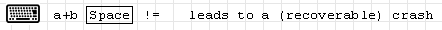 after a*b typing space extends the underline cursor to the expression a*b. When you then type !, the underline shrinks to b! and typing = causes the crash.