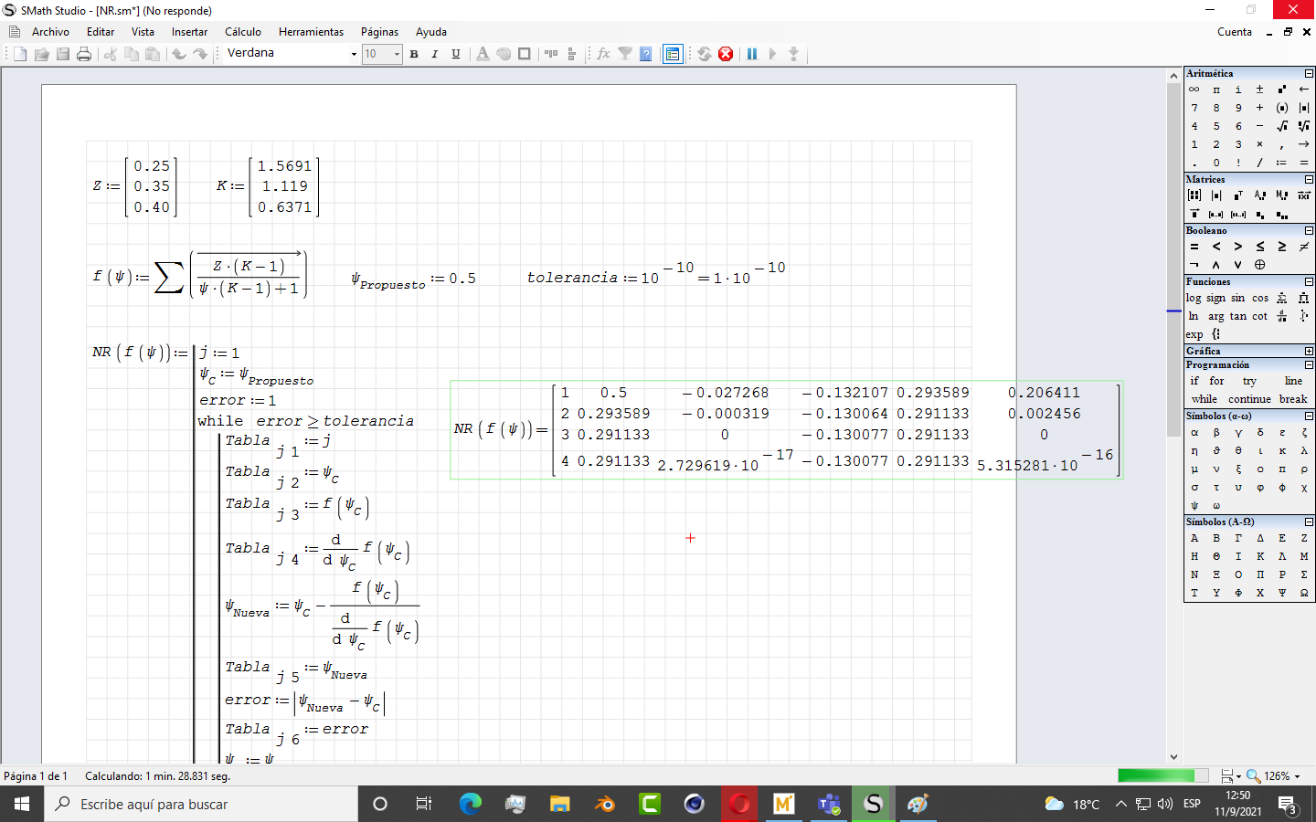 Форум SMath SMath Studio Questions loop while 1 страниц (5 вхождений) loop while - loop while from mathcad prime to SMath Studio - Сообщения К последнему сообщению #1 Опубликовано: 11.09.2021 14:25:54 Erick Valentino 7 сообщений из 28 понравились пользователям. Группа: User How can I do this loop while?what am I doing wrong? NR.sm (8,06 КиБ) скачан 677 раз(а). #2 Опубликовано: 11.09.2021 15:00:19 Erick Valentino 7 сообщений из 28 понравились пользователям. Группа: User I think it already came out, but how do I make the numbers that are almost 0 not appear as 2.72 * 10 ^ -17? #3 Опубликовано: 11.09.2021 15:23:39 overlord 582 сообщений из 1 349 понравились пользователям. Группа: Moderator Add a check for every element if they are lower than something.And if they are, make them zero.Regards 1 пользователям понравился этот постErick Valentino 11.09.2021 15:40:00 #4 Опубликовано: 11.09.2021 15:43:26 Erick Valentino 7 сообщений из 28 понравились пользователям. Группа: User WroteAdd a check for every element if they are lower than something.And if they are, make them zero.Regardswhat function does this have?Thank you so much #5 Опубликовано: 11.09.2021 16:09:46 overlord 582 сообщений из 1 349 понравились пользователям. Группа: Moderator Wrotewhat function does this have?That is cases(), it is in Custom Functions plugin.I would prefer to write your algorithm like attached.It is just my preference by the way.RegardsNR_r1.sm (9,6 КиБ) скачан 666 раз(а). 1 страниц (5 вхождений) Новые сообщения Нет новых сообщений