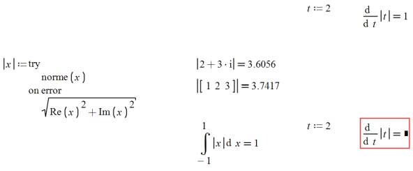 I'm a long time Mathcad user (back to the DOS version) and I think SMath is great, better than what Mathcad has become. So I'm surprised to be so stumped by something so simple. How do I get the magnitude of a vector? In Mathcad I'd use the "|" keyboard shortcut, but in SMath that's a Boolean OR. In the tool palettes I see two operators that look like what I want: absolute value (works only on scalars) and determinant (works only on square matrices). I know this probably seems like a dumb question but I can't find reference to it anywhere.