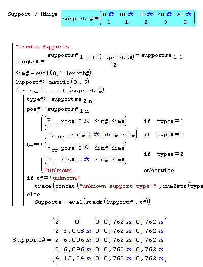 If I understand correctly the FEM beam function... to create a "Fixed" support I need to have a t.cw and a t.cphi at the same position. Therefore I need to create a new matrix with an extra support "type" at the same position. What is the best way to do this? See attached for portion of the routine that I am referring to.