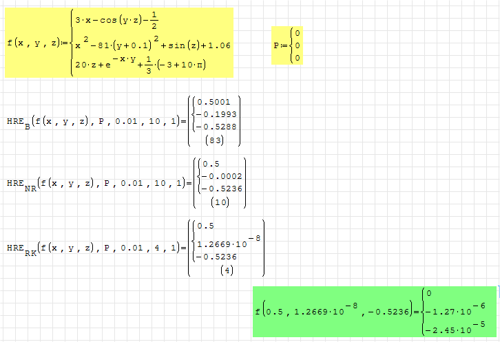Just a little bit of testing with one my "nightmare" problem. I've mentioned this example already. I think this is one more of the SMath symbolic engine problem, and it my happen that you can define a vector function but can not obtain the Jacobian of it. See the attached file and the picture. I managed to solve this problem initially with HR.B() to get better guess values and then Broyden() could do the job. As I do not know how to force SMath to perform all the symbolic operations (for instance, all the operations inside stack() function - among other things), it seems that HR.B() and Broyden() in these situations are the only way of performing similar things . At the end of the file I did all the things about defining the function manually, and then the situation changed drastically. Anyway, I am satisfied that some progress has been made about this