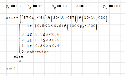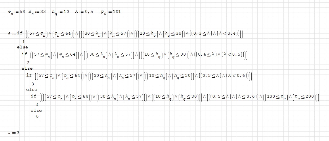 Столкнулся со следующей проблемой: есть несколько условий, необходимо, чтобы при заданных значениях правильно бралось значение "а".