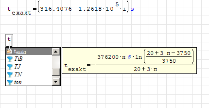 A result apears in a realy strang number format. If I calculate with my -T*A or -(40165*(-0.0079) I receive 317 without an appendix containing a i. How I can receive a similar result from Smath?