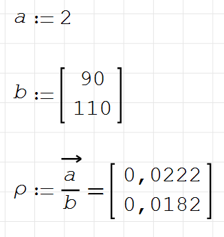 I have a figure that is mass flowrate & I have a matrix with x2 volumetric densities. I want to divide former with the latter to get x2 different volumetric flowrate. How should I proceed given I cannot simply put Matrix in divisor