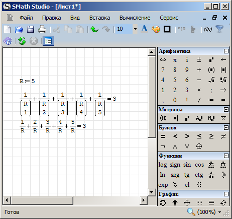 Решил твою задачу за 2 минуты, чтобы не сильно расслаблять тебя, выкладываю скриншот, уж если ты неделю работал в Smath, то уж с вводом выражений думаю справится...