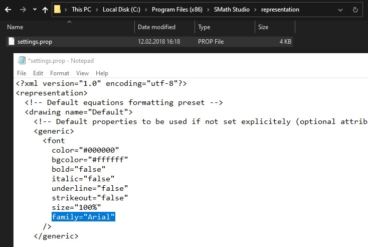 I'm curious about the reasson for keeping blocked the possibilty of changing the font type for equations, descriptions and area titles, and if it will be a standard setting for future versions of the software. Is it possible to include a format menu on future versiones for changing the font for equations and others?. In case it wouldn't be possible, could be restored the capability of changing this by modifing the code in the file setting.prop?.