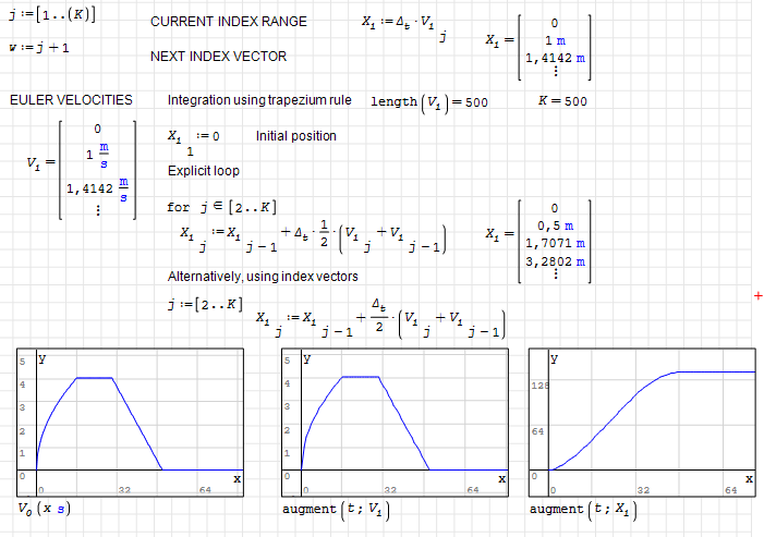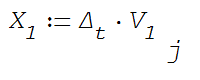 In the expression below, you multiply the time step with all elements of the vector V.1. The name of the result suggests that you want to obtain the position. Yet you have to integrate instead of just multiplying.