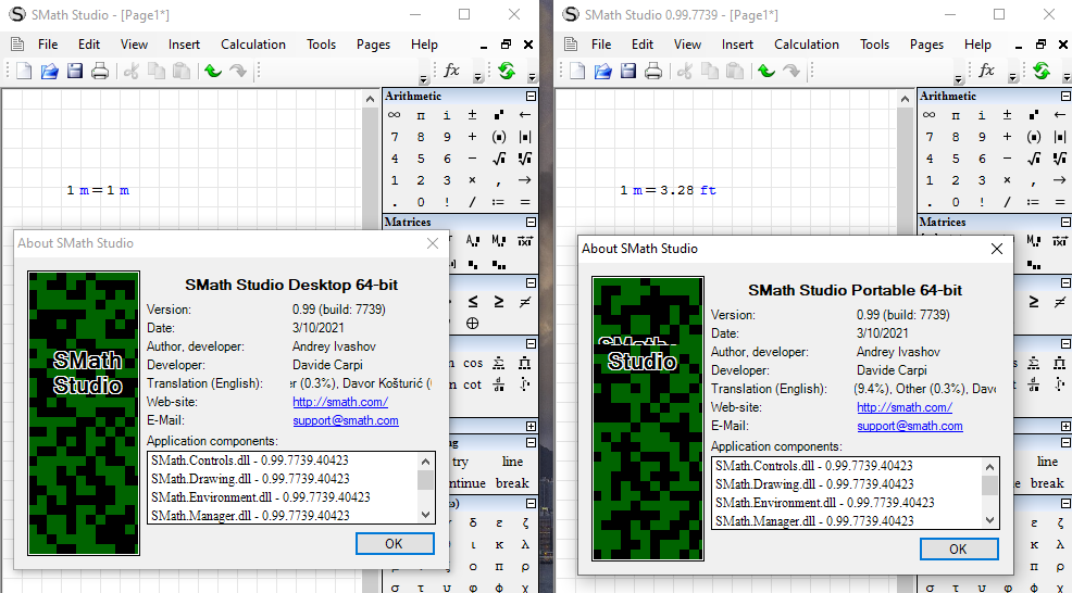 Although I can copy the currently installed version to an "SMath Studio (US) directory and add the portable.version file to that directory and confirm one is standard and the other portable, it may not help if I can't get the plugins that are used in the worksheet to be recognized on the portable version. Something to do with Windows permissions, maybe?