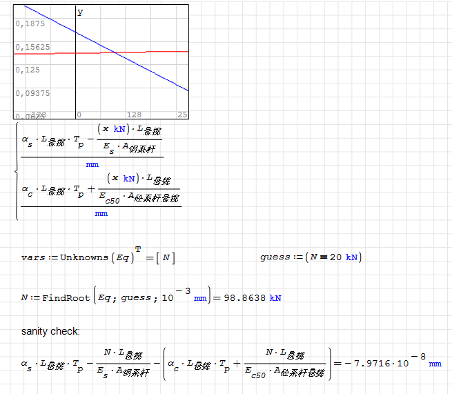 You have to play a little with the precision, especially if there are units involved; in this case, seems that 10^-3 mm is a stable target (10^-2 works too, but in some case it returns the guess value, meaning that is "close enough" for the algorithm - you can see in the plot that 0kN to 200kN is in +0.02/-0.02mm range)
