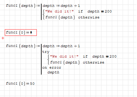 Mathemtica 4.0 "recursion limit" is pure jargon.