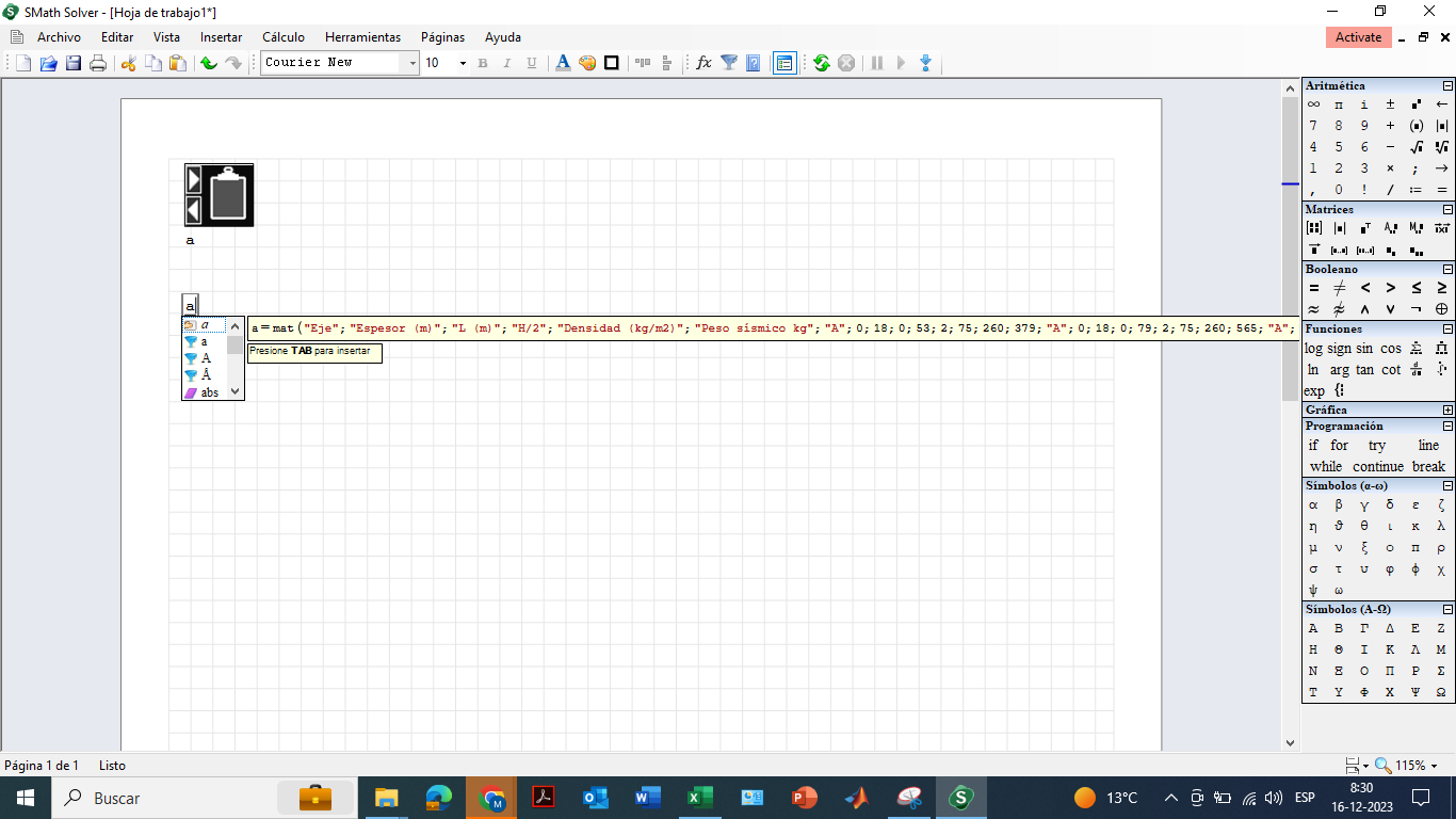 I am starting with the Smath studio and I have a problem that I have not been able to solve, when I insert data from Excel into a variable using the Clipboard Region plugin, once the assignment is made, and when writing the variable it does not show me the data, it only shows me the data preliminarily in the yellow window, but when you write the same or give Tab to display it, it does not do so, what could be happening?< /span>