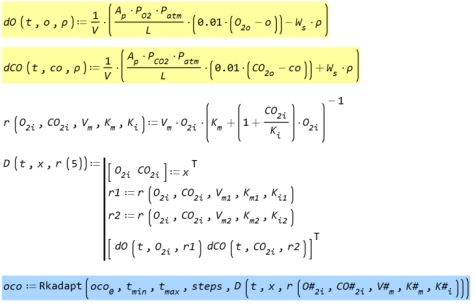 Hi uni. I forgot this feature because I always thinks that it was the same as the matlab parameter placeholder, just to avoid to declare global variables for the local ones that usually appear in the m-script for define the function D. This could be more or less useless in SMath but here I think that you have an actual example of a mandatory use for this feature, because if not the RK procedure gives a bad solution if you don't pay attention to the order of the updates inside the D procedure, as first issue. I guess that there are more.