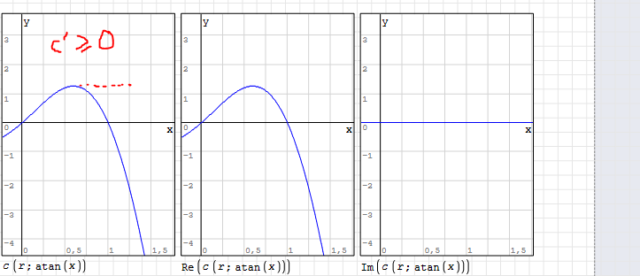 WroteThe plots of N.γ(0.9,atan(x)) and N.γ(0.95,atan(x)) has an odd shape when they approach x=1. It turns out there are some complex solutions in this area.