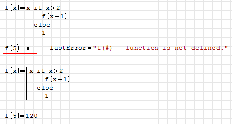 - Over time, recursion has changed in SMath: in the past, it was possible to use recursion directly; currently it seems to require a programming function like line(), otherwise it reports "function not defined" error.