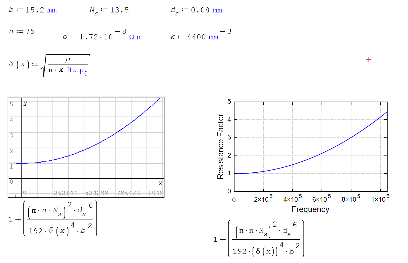 Форум SMath SMath Studio Questions Help with Graph Function 1 страниц (2 вхождений) Help with Graph Function - Graph function for litz wire resistance factor vs frequency - Сообщения К последнему сообщению #1 Опубликовано: 05.10.2023 13:27:35 Ian 0 сообщений из 1 понравились пользователям. Группа: User Hello, I'm lacking math skills and hoping someone can give guidance to create an X-Y plot with frequency on the X axis and resistance factor on the Y axis.All parameters can be considered constant besides frequency in this example.Thank you! #2 Опубликовано: 05.10.2023 14:39:47 Oscar Campo 135 сообщений из 309 понравились пользователям. Группа: Moderator Hi,You only must define "f" as your variable "x" and plot 1 страниц (2 вхождений) Новые сообщения Нет новых сообщений
