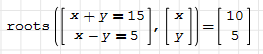 I tried to solve two equations (x+y = 15 and x-y = 5), but the solver means "Assign variable" ???
